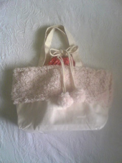 私がしたのは、プードルファーをトートに縫い付けた事と巾着作りです。