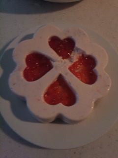 イチゴのパンナコッタ。イチゴジャムと牛乳と生クリームを混ぜてゼラチンで固めただけ。めちゃくちゃウマー。