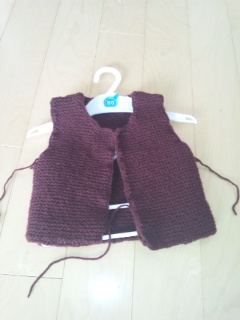 まだ途中です。糸の始末とボタンつけが済んでいません。